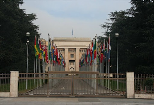 De ivoren toren van de VN in Genève, veilig achter slot en grendel. Hun personeel zou beter eens wat meer buiten komen...